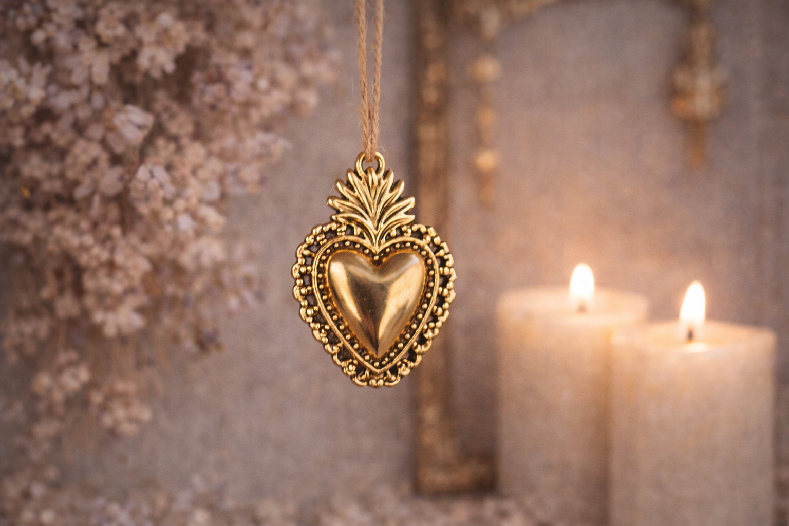 Les ex-voto sont de petits objets symboliques, souvent en forme de cœur, offerts ou conservés comme un témoignage : une gratitude, une intention, une protection, un passage de vie. On les retrouve dans différentes traditions, mais aujourd’hui ils sont aussi utilisés comme de jolis talismans du quotidien : à poser sur un autel, près d’une bougie, dans une boîte à souvenirs, ou à garder sur soi pour se rappeler un vœu, une force, un “merci” intérieur.
