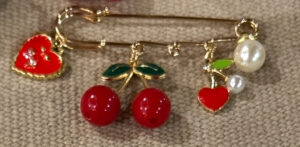 Jolie broche Alba élégante avec de jolies perles nacrées, de cerises gourmandes et d’un coeur pour accompagner vos tenues et vous sublimer, lors d’une cérémonie, une soirée chic ou pour un effet chic et décontracté.